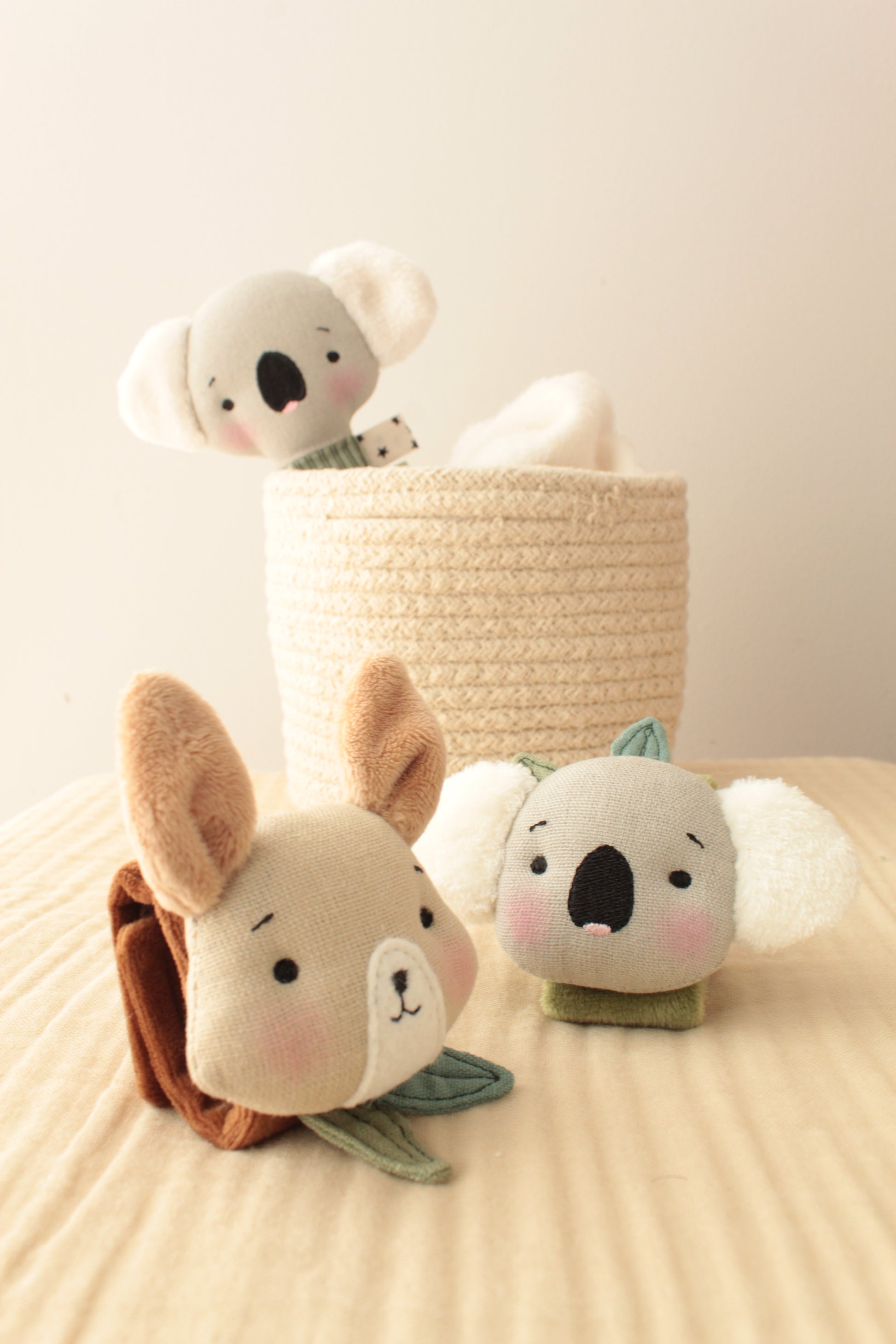 › 1 Kangaroo and 1 Koala – both include a gentle rattle to spark sound exploration and early motor skills.